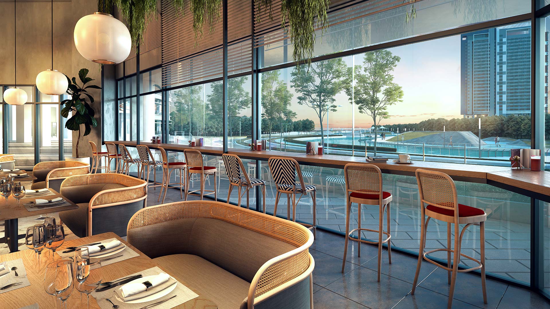 Refresh the senses with greenery that surrounds the lively commercial hub