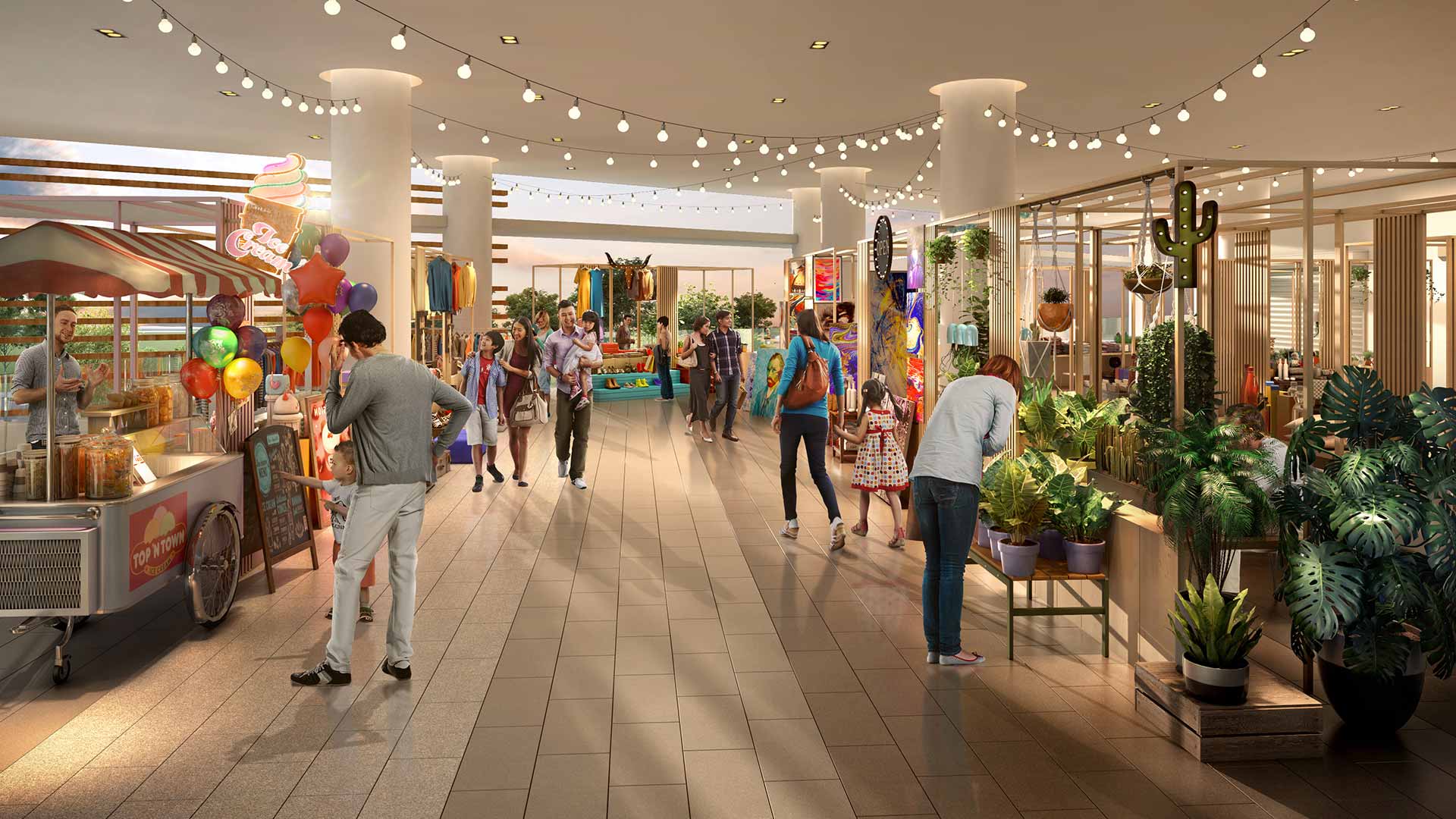 Enjoy a relaxing balance of views in between the shoppes and the urban park